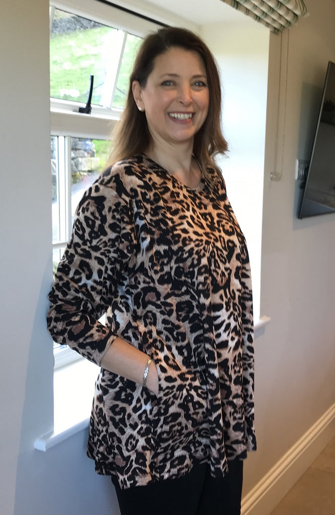 Our best selling Eva swing top with a scooped neckline and has hidden pockets in the side seams. This is a very generously sized.