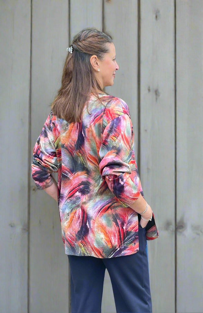 We love this tunic style Top - a straight shape with no swing to the hip line. Made from our soft handle jersey fabric which drapes beautifully but doesn't crease or cling. It comes in three generous sizes. It has a boat neckline, long sleeves and has deep side splits.