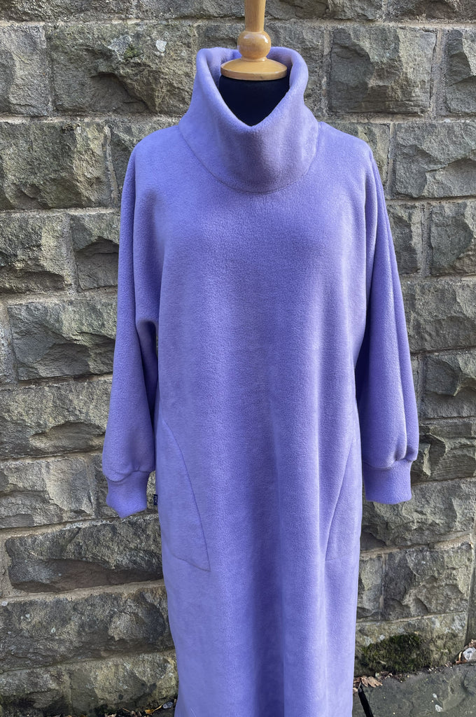 We've been asked for a Fleece Kaftan which opens to the hemline and we have listened. It is the same shape as the cowl neckline version, which has loose dolman sleeves eased into a cuff. It has a cosy collar and pockets in the side seams and is fastened with popper fasteners to below the knee.
